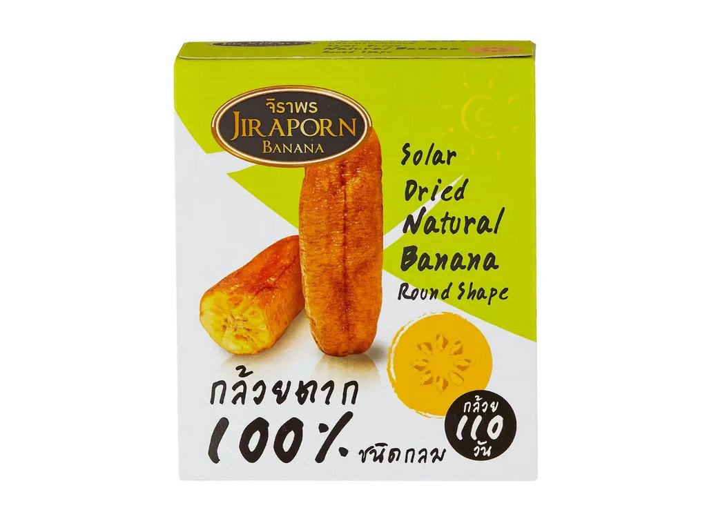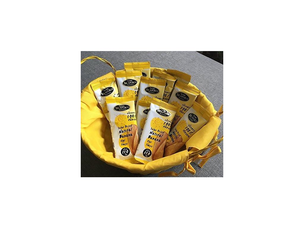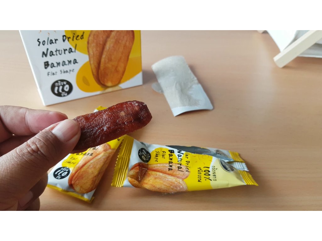 Solargetrocknete natürliche Bananen von Jir Aporn sind 100 % natürlich und schmecken wie eine gebackene Banane. Es ist ziemlich selten, direkt von der Stange ohne Probe zu kaufen, und als Bananenliebhaber fand ich eine Schachtel mit 100 % natürlicher, sonnengetrockneter Banane zu unwiderstehlich! Ich müsste mich nicht mehr mit überreifen Bananen mit dunklen Flecken auseinandersetzen! Sie sind ein großartiger Snack, wenn Sie Bananen lieben.