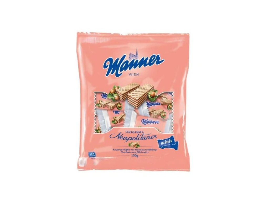 Waffeln aus fünf Schichten feiner Waffeln, gefüllt mit vier Schichten feinster cremiger Haselnussfüllung.