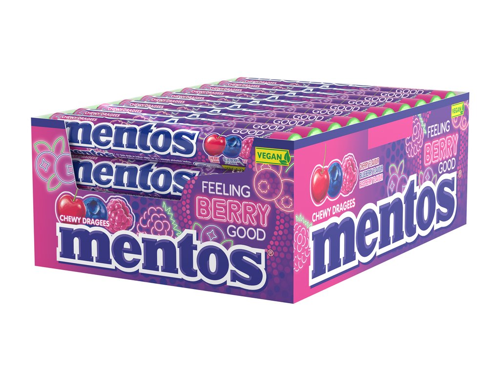 Begib dich auf ein fruchtiges Abenteuer mit den brandneuen Mentos Feeling Berry Good! Diese farbenfrohe Mischung steckt voller unwiderstehlicher Geschmacksrichtungen – Kirsche, Blaubeere und Himbeere – und ist eine wahre Hommage an alles Fruchtige.