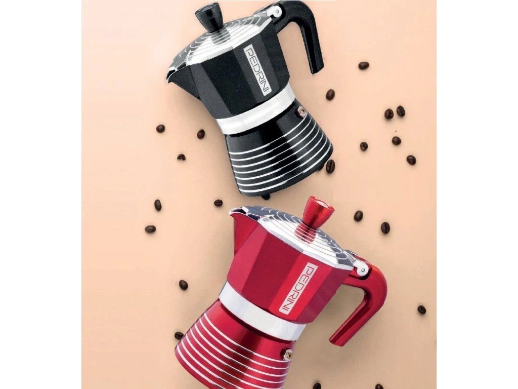 Infinity der italienischen Marke Pedrini ist eine stilvolle Mokkakanne aus hochwertigem, lebensmittelechtem Aluminium . Ihre Oberfläche ist mit einer schimmernden, hitzebeständigen Glasur verziert, die das Material auch bei längerem Gebrauch vor Anlaufen und Qualitätsverlust schützt. Elegante kreisförmige Muster auf Deckel und Boden verleihen der Kanne eine Note, die nicht nur Sie, sondern auch jeden Ihrer Besucher begeistern wird.