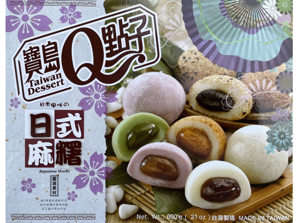 Zusammensetzung: Maltose, Klebreis, Zucker, Stabilisator (E144), rote Bohnenpaste (rote Bohnen, Zucker, Maltose, Palmöl), Erdnussbutter ( Erdnüsse , Zucker, Palmöl, Salz, Emulgator: E471, Erdnussaroma, Vanillepulver), Sesampaste ( Sesam , Zucker, Palmöl), Grünteepaste (Grünteepulver, Bohnen, Zucker, Maltose, Palmöl), Süßkartoffelpaste (Süßkartoffeln, Bohnen, Zucker, Maltose, Palmöl, Erdnüsse, Sesam , Grünteepulver, natürliche Farbstoffe (E163, E162), Konservierungsmittel (E200)