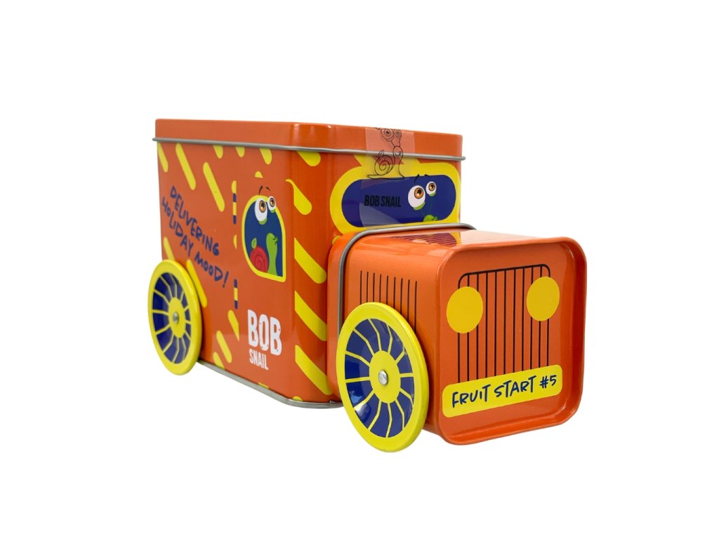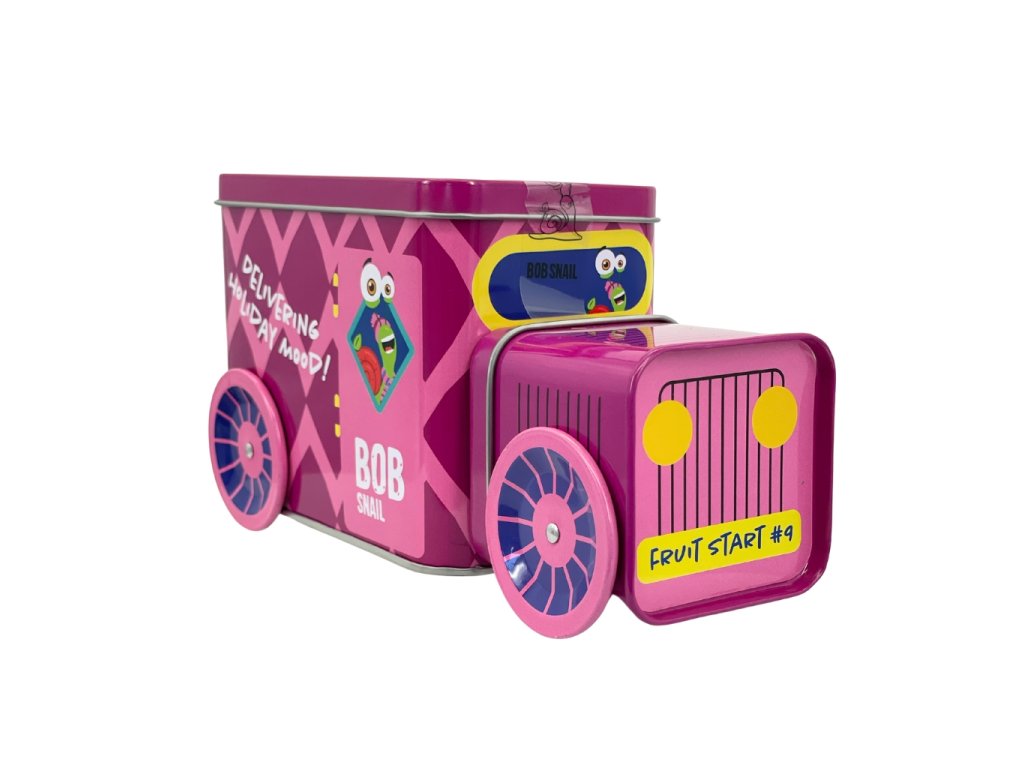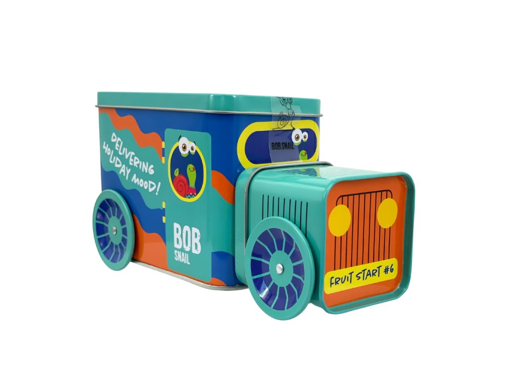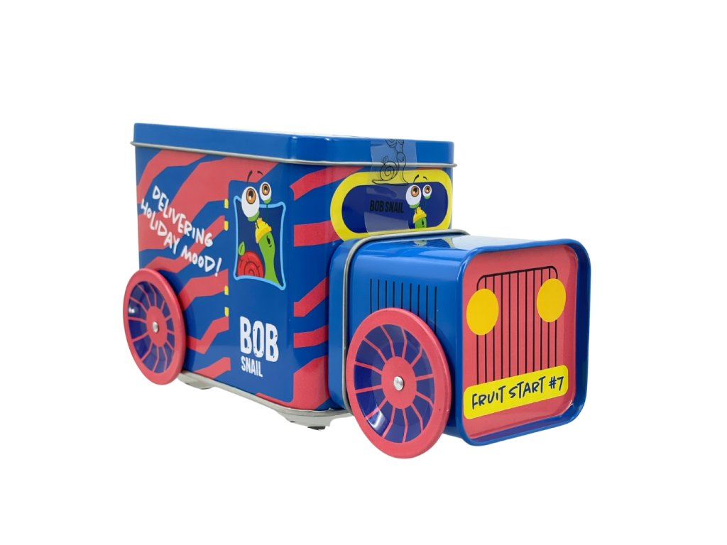 Die Weihnachtslokomotive Schnecke BOB in 9 Farbvarianten ist gefüllt mit beliebten Fruchtleckereien, einem Spielzeug aus einer limitierten Sammleredition, einem Stickerset und einem Originalticket für eine unvergessliche Reise.
