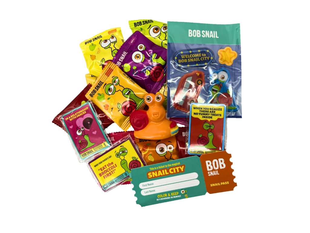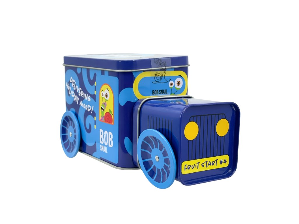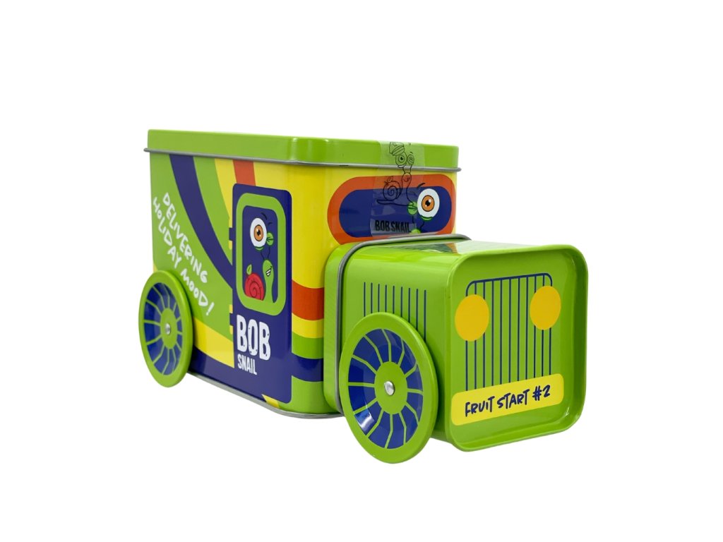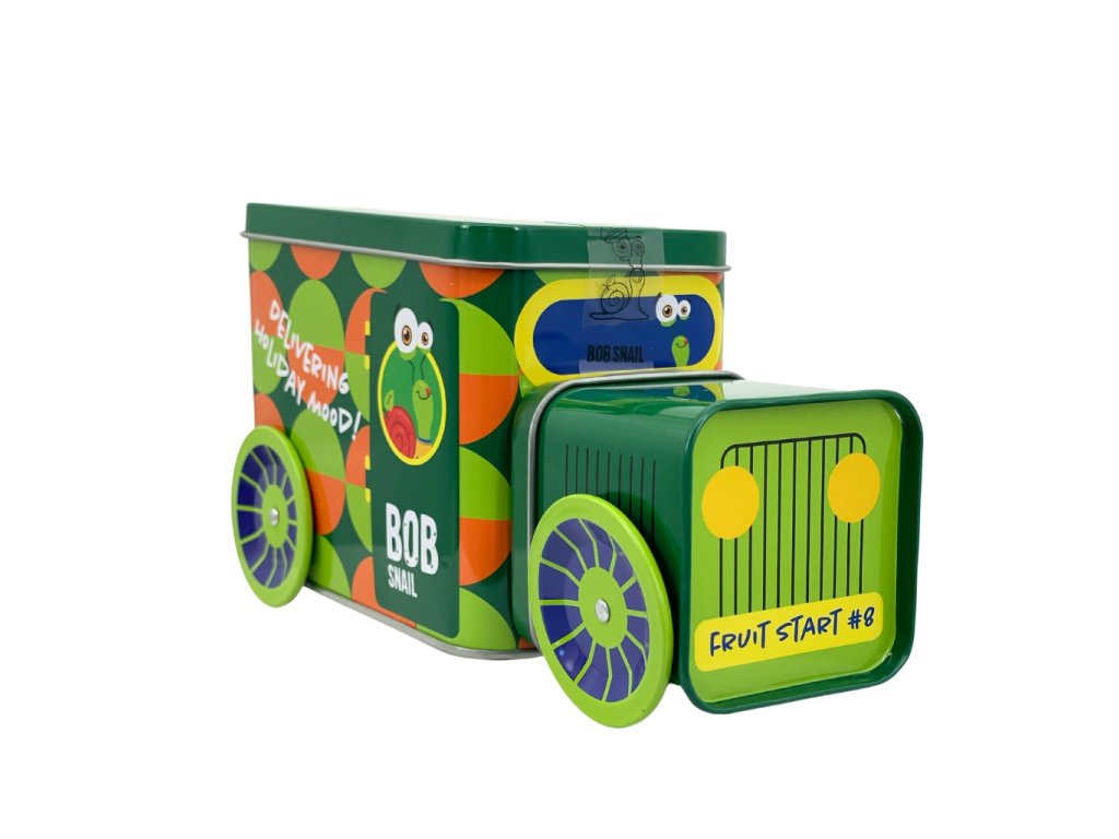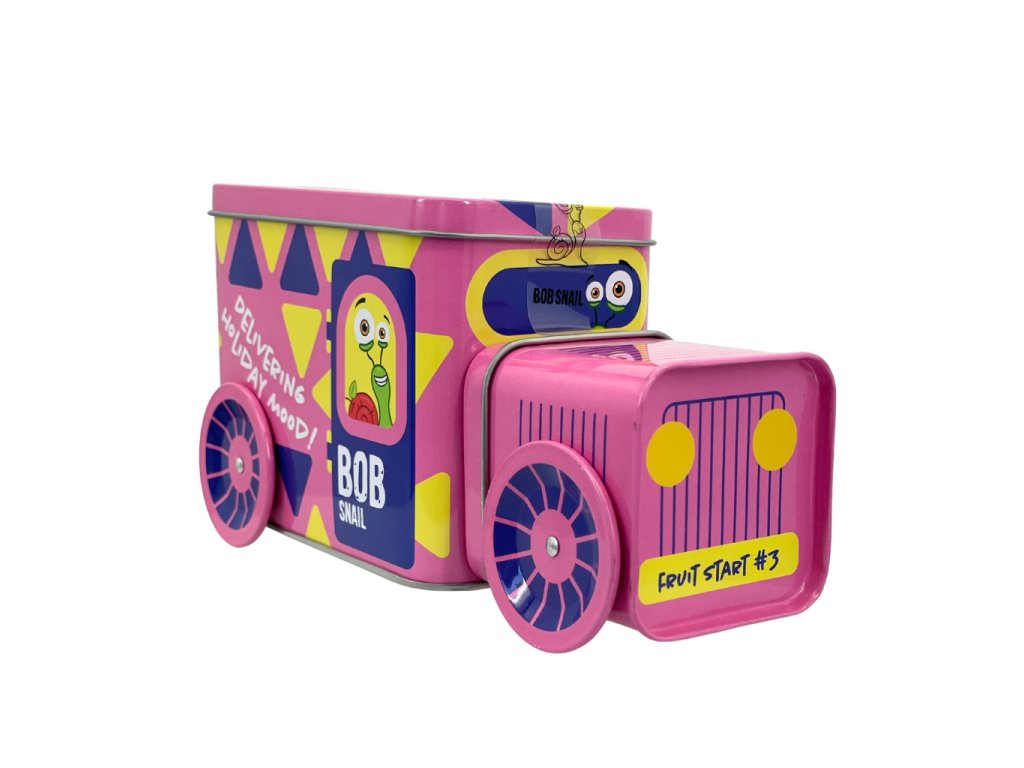 Die Weihnachtslokomotive Schnecke BOB in 9 Farbvarianten ist gefüllt mit beliebten Fruchtleckereien, einem Spielzeug aus einer limitierten Sammleredition, einem Stickerset und einem Originalticket für eine unvergessliche Reise.