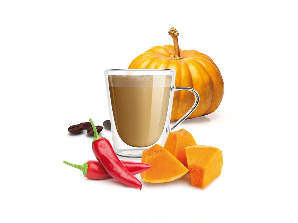 Kaffee in Kapseln Pumpkin Spice Latte Starbucks ist ein delikater Kaffeegeschmack mit dem Geschmack von Kürbis, umhüllt von Noten von Zimt und Muskatnuss.