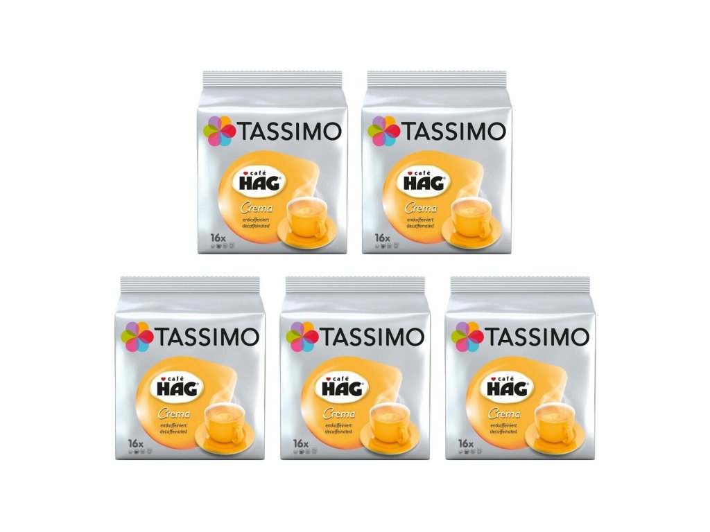 Tassimo Kaffee HAG Crema entkoffeinierter Kaffee 16 Stück Karton 5 Packungen