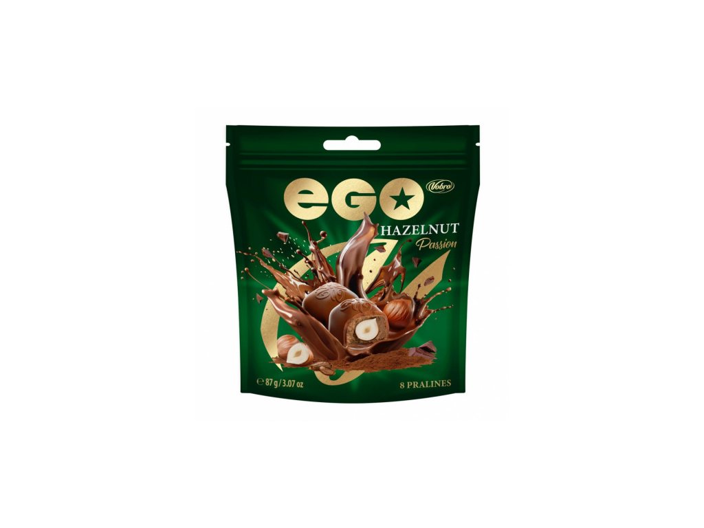 Für Liebhaber traditioneller Aromen gibt es Vobro EGO Haselnuss-Passion. Diese elegante Tüte enthält Pralinen, die eine der vollkommensten Kombinationen in der Welt der Süßwaren zelebrieren: Haselnuss und Milchschokolade.
